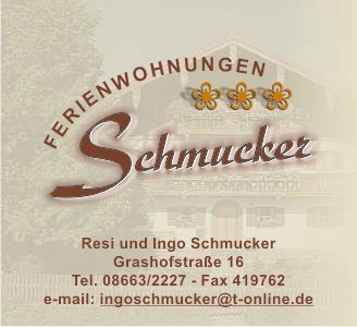Verantwortliche Stelle im Sinne der Datenschutzgesetze ist: Resi und Ingo Schmucker, Grashofstraße 16, 83324 Ruhpolding Telefon 08663/2227, E-Mail: ingoschmucker(at)t-online.de